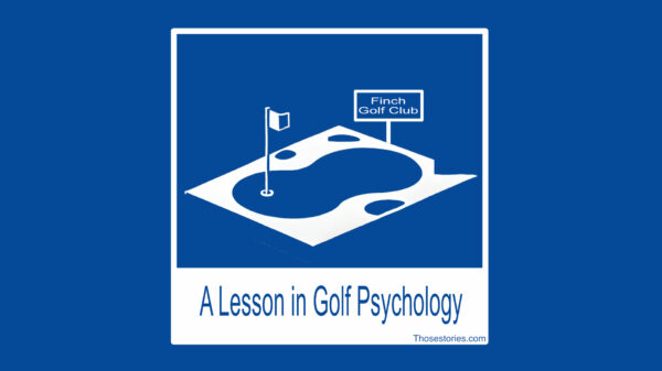 “Not great for our golf game,” Chet agreed. As they approached the tee box, they saw a man under a small tent with a sign next to it that said ‘golf lessons’.
